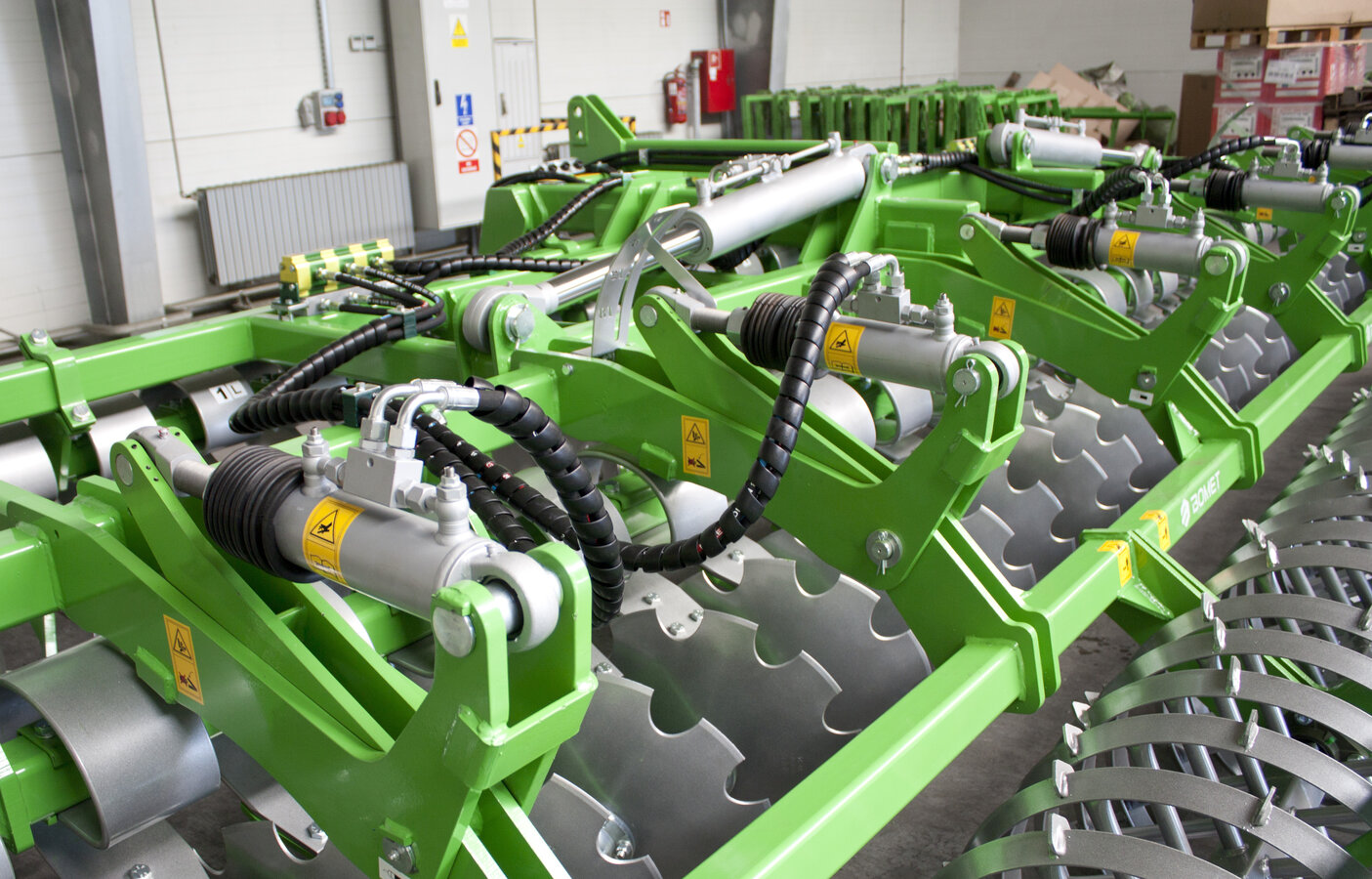 Die Ausstattung der Scheibenegge mit gezahnten Scheiben mit einem Durchmesser von 510 mm oder 560 mm und der große Abstand zwischen der vorderen und hinteren Scheibensektion ermöglichen die Anwendung der Maschine zur Bearbeitung von Feldern mit einer großen Menge an Pflanzenresten, z.B. nach der Körnermaisernte.