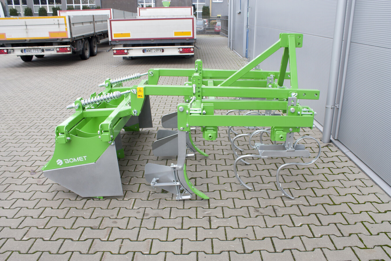 Na pierwszej belce ramy nośnej maszyna ma zamocowane słupice z zębami sprężynowymi służące do spulchniania gleby pomiędzy rzędami ziemniaków.