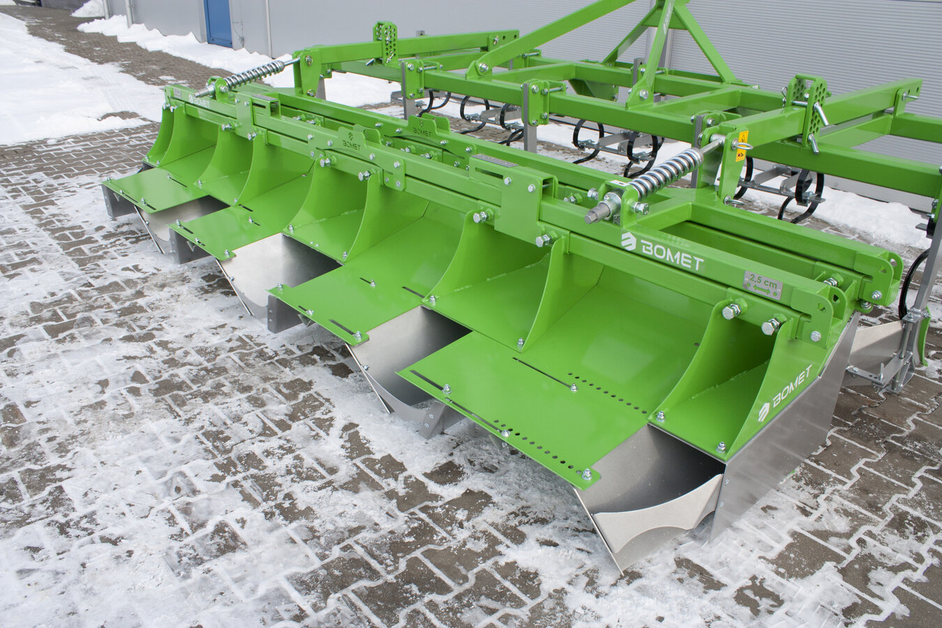 Z tyłu na ramionach przyłączeniowych zamocowana jest przystawka profilująca ostateczny kształt redlin i ograniczająca zagłębienie zębów. Dodatkowo, aby poprawić jakość pracy i ograniczyć rozsypywanie się obrabianej gleby na boki, zastosowano ekrany boczne, które dodatkowo kierują rozluźnioną glebę bezpośrednio pod przystawkę.