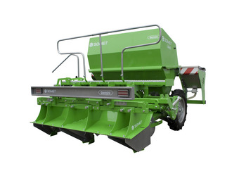 Eine zusätzliche Ausstattung, die die Effizienz und Wirtschaftlichkeit der Maschine erhöht, ist ein Düngerstreuer (Metall oder säurebeständiger Stahl). Die 50 dm3 Streutanks sind an den Seiten des Pflanzgefäßes montiert. Mit dem Dosierer können Sie die Anfangsdosis an Mineraldünger direkt während der Pflanzung abgeben.
